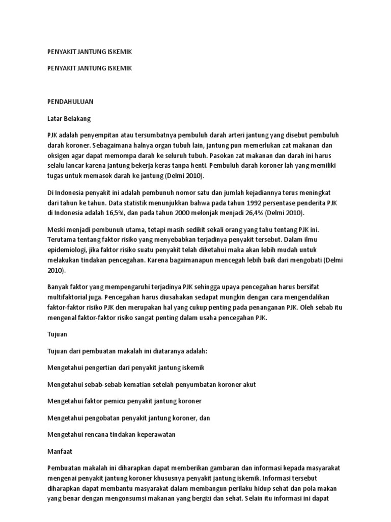 Penyakit Jantung Iskemik Penyebab Hingga Pengobatan